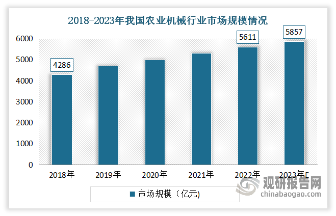 市場不竭擴(kuò)大。數(shù)據(jù)顯示,2018-2022年我國農(nóng)業(yè)機(jī)械行業(yè)市場規(guī)模由4286億元增加至5611億元,年均復(fù)合增加率達(dá)8。4%。估量2023年我國農(nóng)業(yè)機(jī)械市場規(guī)模將正在5857億元擺布。