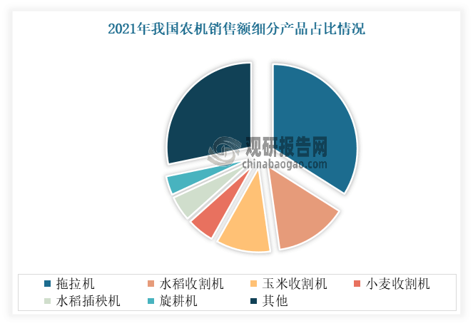 農(nóng)業(yè)機(jī)械品種不竭添加,近年跟著農(nóng)業(yè)出產(chǎn)程度的提高和農(nóng)業(yè)出產(chǎn)布局的調(diào)整,農(nóng)業(yè)機(jī)械的品種不竭添加,類型越來越豐碩。從保守的農(nóng)業(yè)機(jī)械設(shè)備到智能化、從動化的農(nóng)業(yè)機(jī)械設(shè)備,從農(nóng)田耕做到農(nóng)產(chǎn)物收割和加工,農(nóng)業(yè)機(jī)械正正在不竭立異和成長。目前我國農(nóng)業(yè)機(jī)械曾經(jīng)涵蓋了種植、畜牧、漁業(yè)等多個范疇,各類新型的農(nóng)業(yè)機(jī)械如烘干機(jī)、精準(zhǔn)灌溉、智能溫室等也不竭出現(xiàn)。數(shù)據(jù)顯示,2023年我國規(guī)模以上企業(yè)2200多家,從停業(yè)務(wù)收入2428億元;出產(chǎn)14大類50小類4000多種農(nóng)機(jī)產(chǎn)物。拖沓機(jī)正在我國農(nóng)業(yè)機(jī)械市場中占比處于較高地位。以2021年的數(shù)據(jù)為例,2021年正在農(nóng)業(yè)機(jī)械市場中,拖沓機(jī)發(fā)賣額占比最大,達(dá)到33。96%;其次為水稻收割機(jī)及玉米收割機(jī),發(fā)賣額占比別離為13。82%和10。37%!