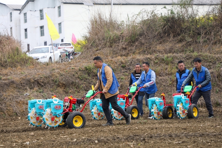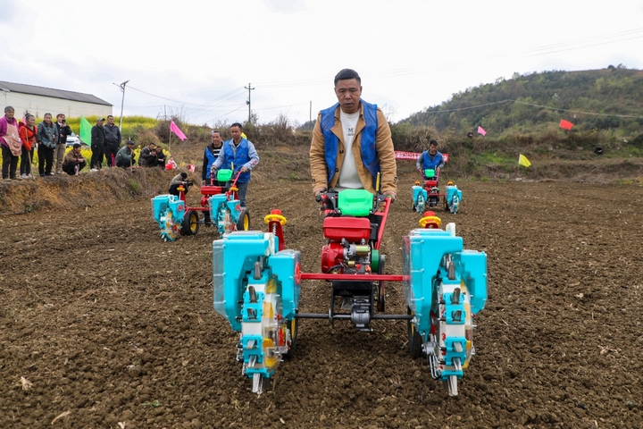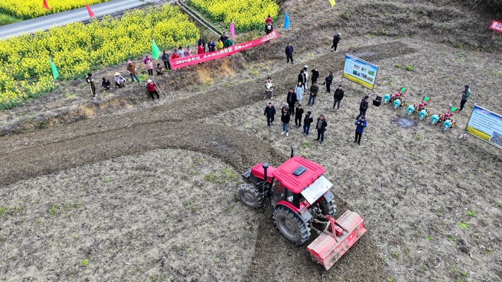 正在示范田里,兩臺(tái)旋耕機(jī)輪流功課,不到半小時(shí)就完成了約兩畝地盤(pán)的翻耕工做,而過(guò)去利用人工體例翻耕兩畝地則需要一成天。地盤(pán)翻耕完成后,播種機(jī)上場(chǎng),幾臺(tái)播種機(jī)并排功課,敏捷完成了這片地盤(pán)的播種工做。金華鎮(zhèn)的相關(guān)工做人員也向現(xiàn)場(chǎng)不雅摩的村平易近引見(jiàn)了機(jī)械化耕做、播種和收割的長(zhǎng)處。